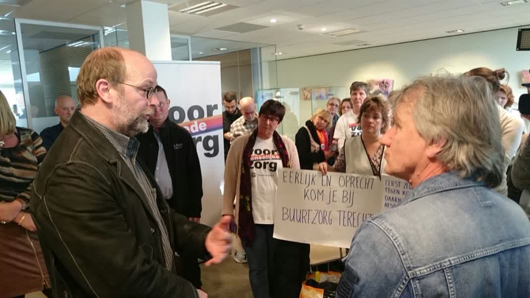 De gemeente wil net als Winterswijk en Oost-Gelre cliënten onderverdelen bij bestaande zorgaanbieders. Dat betekent dat de medewerkers van TSN Thuiszorg opnieuw moeten solliciteren en mogelijk hun baan kwijtraken. De demonstranten eisen van de wethouder dat de medewerkers onder dezelfde arbeidsvoorwaarden worden overgenomen en dat de koppeltjes van medewerker en cliënt in stand blijven.
