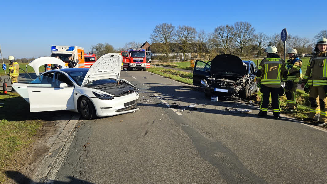Bij een ongeval net over de grens van Duitsland in Vreden, nabij Groenlo, zijn twee auto's hard tegen elkaar gebotst. Het ongeval is mogelijk ontstaan door een voorrangsfout.