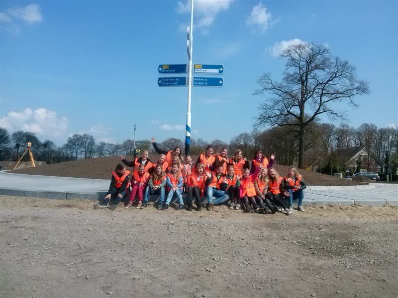 De laatste slingers en ballonnen worden nog snel opgehangen door de leerlingen van groep 8. Dan is b...