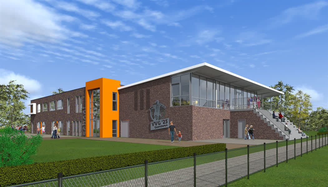'Ook voor ons is dit de eerste keer', vertelt ontwikkelaar Bram Klomps over het samenvoegen van een voetbalclub en schoolgebouw. Het gebouw kent een compacte vorm en enkele ruimtes worden dubbel gebruikt. Zo is de personeelskamer ook gelijk de bestuurskamer van de voetbal en kan het zogenaamde Atrium doordeweeks door leerlingen gebruikt worden en in het weekend door leden van VVG'25.