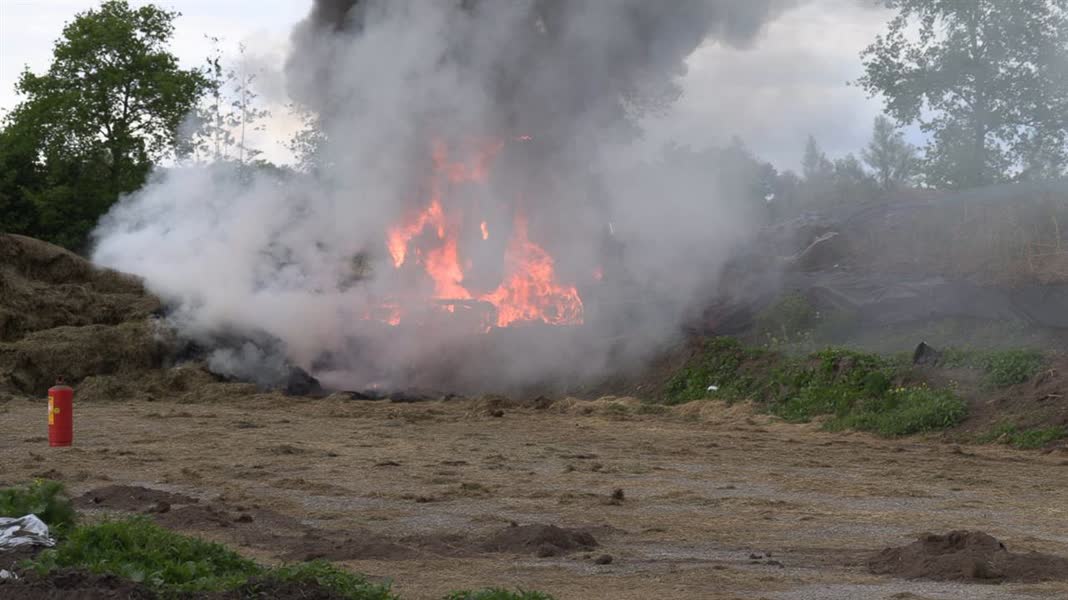 Minikraan vliegt in brand nabij Harrreveld