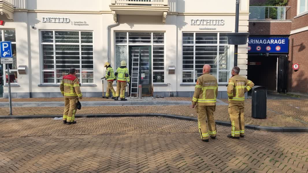Door de explosie kon de deur van het pand niet meer open. De brandweer is hierdoor dinsdagmorgen voor een tweede keer opgeroepen. Eerst is geprobeerd om het raam te forceren, toen dat lukte is een van de brandweerlieden het pand binnen gegaan om de deur eruit te halen. Uiteindelijk hebben ze met een slijptol de roldeur los gekregen.