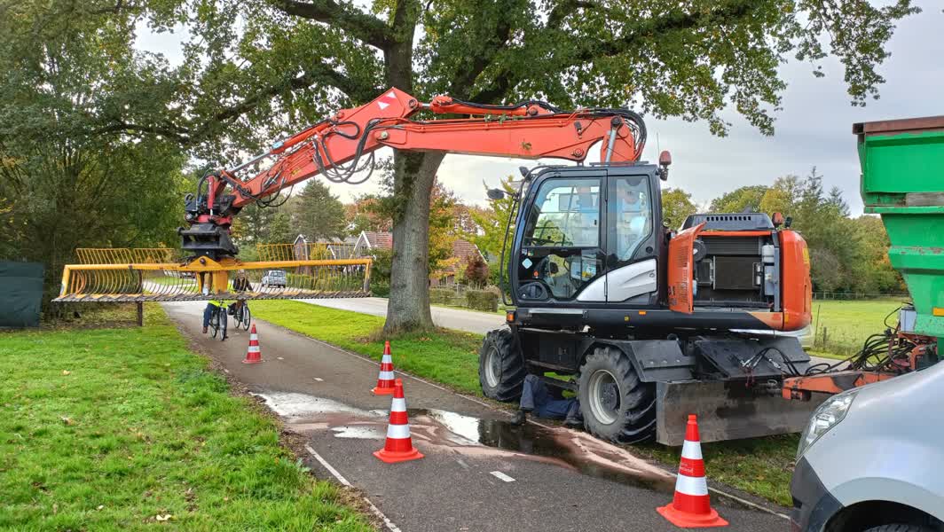 Een mobiele kraan heeft maandagmiddag olie gelekt in Aalten. De berm waar een deel van de olie in terecht is gekomen, moet worden uitgegraven.