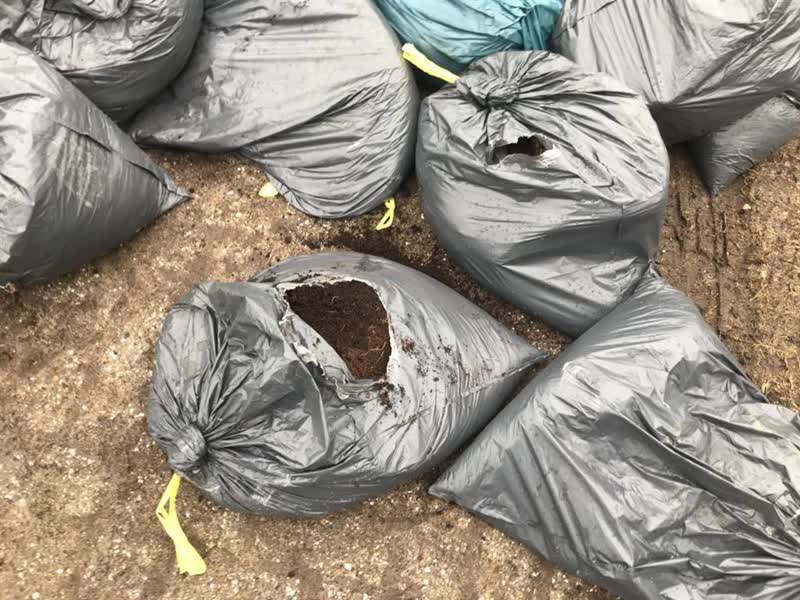 De vondst werd omstreeks 10.00 uur gedaan. Er zijn zo'n tien tot twaalf zakken gevonden langs de weg. Het gaat om vuilniszakken gevuld met potgrond, dat mogelijk gebruikt is voor een hennepkwekerij.