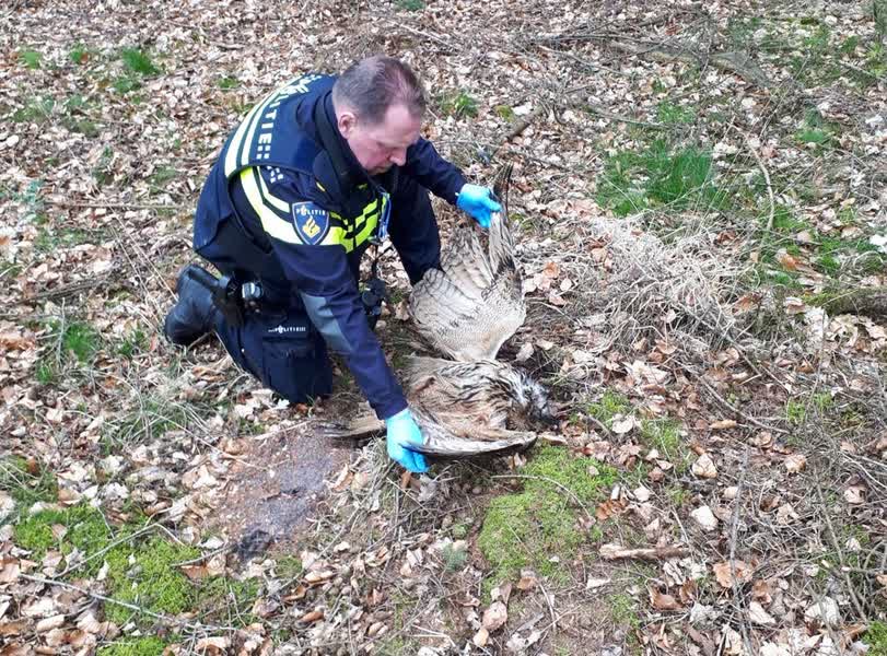 De exacte locatie van de vondst wil de wijkagent omwille van het onderzoek niet prijsgeven, maar het gaat niet om de oehoe die nestelt in de steengroeve. De politie zoekt naar getuigen. “Er gaat een verhaal dat mensen een oehoe hebben gezien die slecht vloog”, aldus Saris. “Ik weet niet of dit waar is, maar we komen graag met mensen in contact die meer weten.”