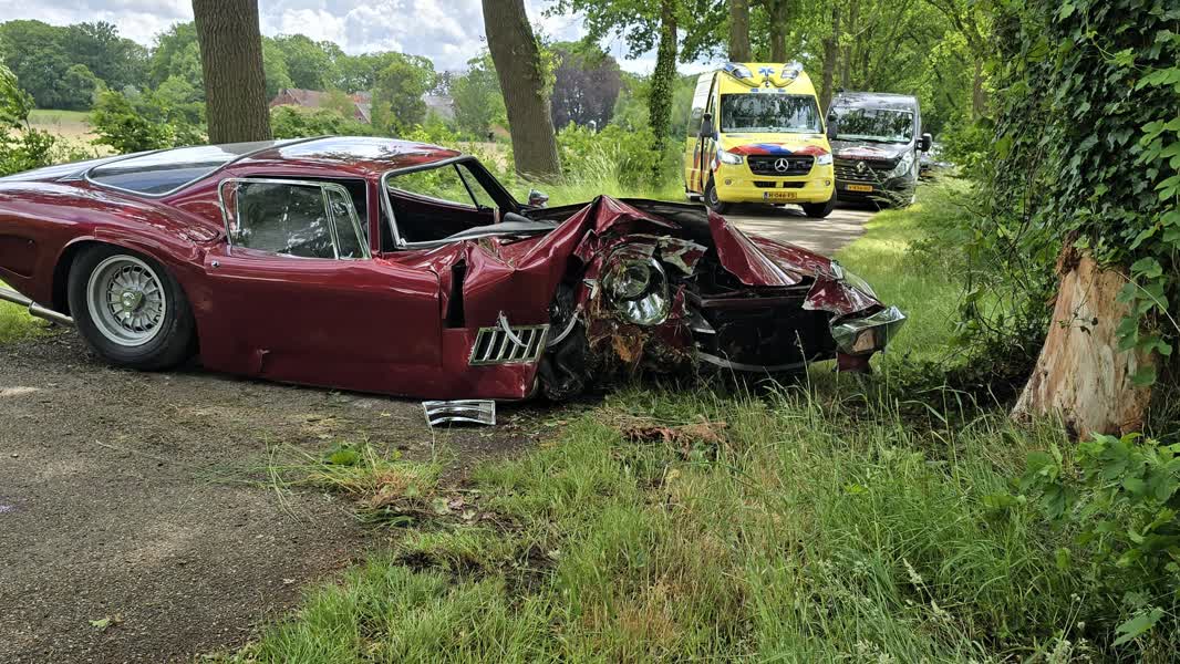 Een monteur die even een proefrit maakt met een exclusieve en peperdure oldtimer moest een vervelend belletje naar zijn baas maken. De automobilist verloor in een bocht de macht over het stuur en knalde frontaal op een boom. De exclusieve oldtimer kan als verloren worden beschouwd.