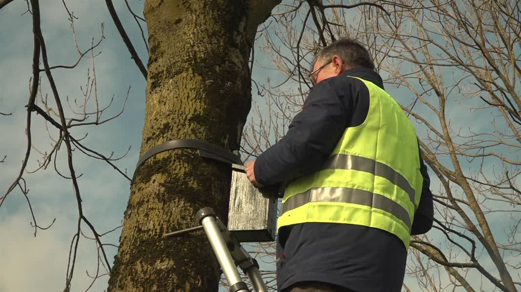 "Het is belangrijk dat we zo vroeg zijn, want we hebben een ontzettende zachte winter", zegt wethouder Oscar van Leeuwen. "Die mezen moeten zo snel mogelijk aan de slag kunnen." De werkgroep is maandag begonnen met het ophangen van de kasten. "Daar zijn we nog wel even druk mee", zegt Jan Beerntsen van de werkgroep. "Naast Didam gaan we ook nog naar 's-Heerenberg en de kleine kernen van Montferland. Daarnaast geeft de gemeente nog eens vierhonderd nestkasten uit aan inwoners die ze zelf kunnen ophangen." In Montferland zijn de kosten voor bestrijding de afgelopen jaren vijf jaar explosief gestegen. De verwachting is dat er in 2020 meer dan een ton voor moet worden uitgetrokken. "Die kosten nemen gigantisch toe, maar we moeten wat doen. De overlast wordt anders ook aanzienlijk groter", aldus Van Leeuwen. Naast nestkasten wordt de eikenprocessierups in Montferland bestreden met duurzame bestrijdingsmiddelen. "Zo hopen we dat er een ecologisch evenwicht komt, zodat de kosten uiteindelijk weer mee gaan vallen."