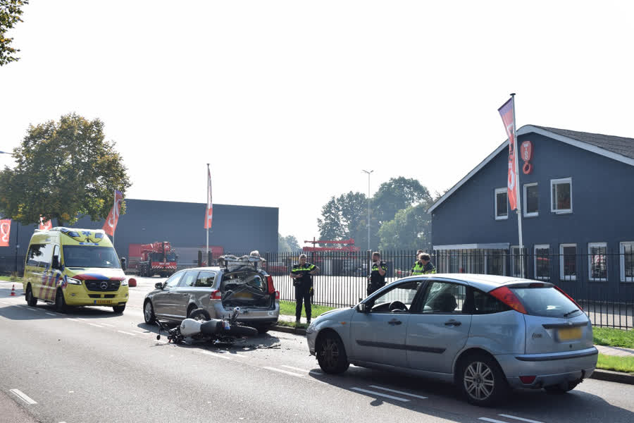 Het ongeval gebeurde donderdagmiddag rond 14.45 uur op de Havenstraat. Door een nog onbekende oorzaak knalde een automobilist op de motorrijder, waarna de motorrijder in de kofferbak van de voorliggende auto schoot. De bestuurder van de motor is gecontroleerd door het toegesnelde ambulancepersoneel, maar hoefde niet mee naar het ziekenhuis.