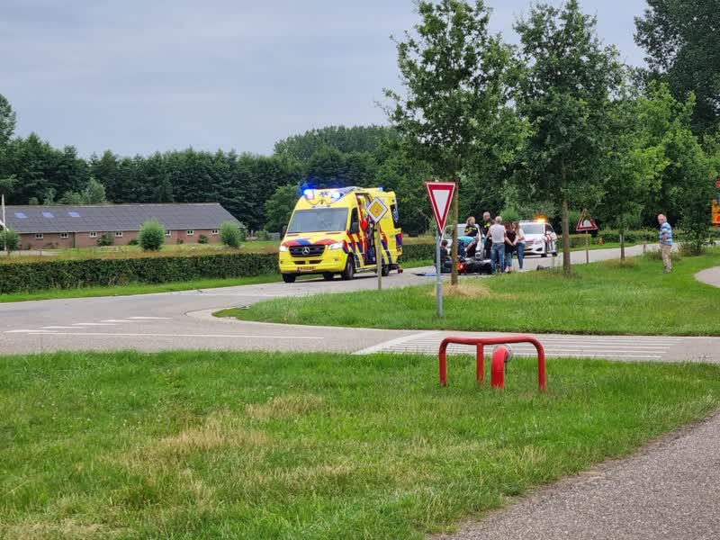 Het ongeval gebeurde rond 19.30 uur op de Zelhemseweg. Volgens omstanders zou er een inhaalactie aan de botsing vooraf zijn gegaan. Duidelijk is dat de motorrijder na de aanrijding hard ten val is gekomen. Hij is onder meer met beenletsel overgebracht naar het ziekenhuis.