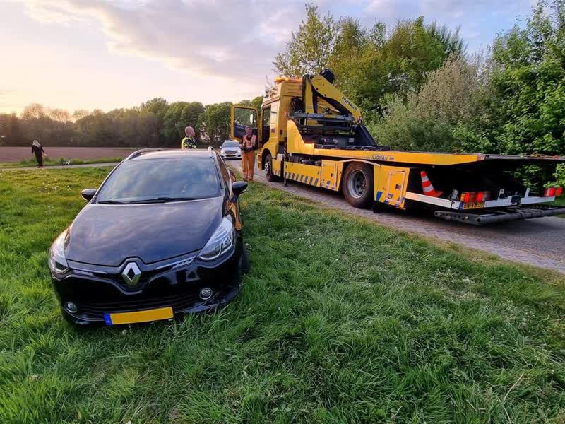 Een auto is zaterdagmiddag rond 14.15 uur is op de Varsseveldseweg (N330) bij Halle op de kop in de ...