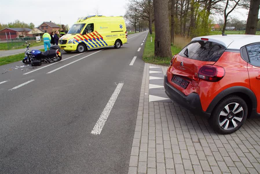 Een motorrijder is zondagmiddag achterop een auto gereden die af wilde slaan in Winterswijk Meddo. De auto wilde vanaf de Groenloseweg de Landweer in rijden, dat werd over het hoofd gezien door de motorrijder.