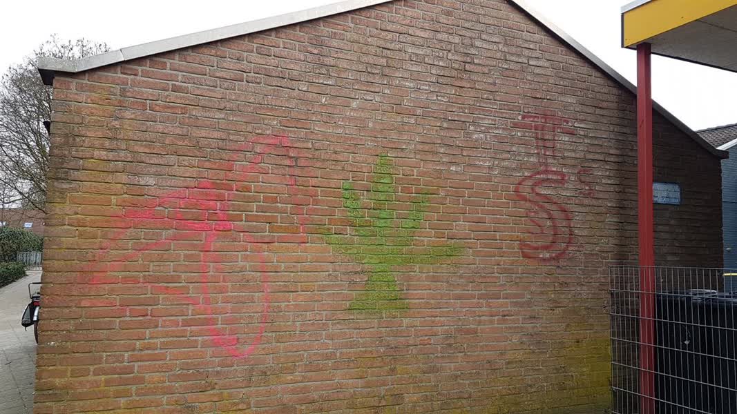 "Het ziet er heel creatief uit, echter de school zit met de schoonmaakkosten", zo laat de politie Winterswijk weten. Op de muur van de school aan de Burgemeester van Nispenstraat is onder meer een wietplant te zien. Daarnaast staan nog een tweetal andere tekeningen.