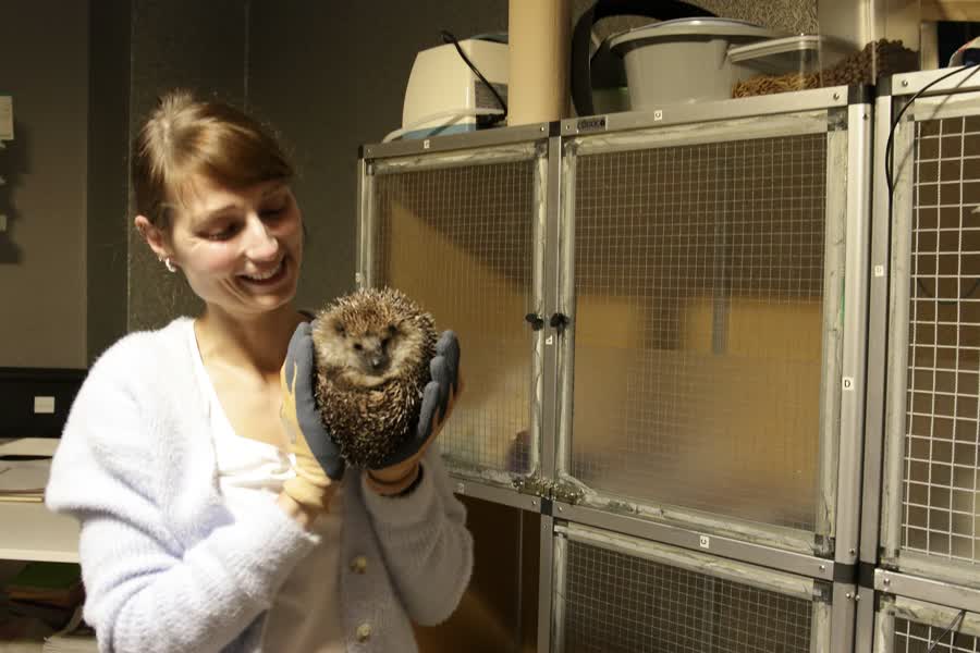 Natalja heeft haar opvang de woonkamer in het huis van haar overleden oma met egelkasten en opgestapelde konijnenkooien ingericht. Deze stonden tot dit voorjaar bij haar thuis in de woonkamer waar ze ook met haar vriend woont. Naast voederbakken, zijn in de hokken stoffen buidels te zien op oude kranten. In die buidels slapen de egels. Een egel komt naar buiten om wat kattenbrokken of de natte paté te eten. Het is bewust warm in de oude woonkamer, anders gaan de egels voorgoed winterslaap in en zullen ze nooit meer wakker worden, legt Natalja uit. Ze is er erg druk mee. Ze heeft een fulltimebaan en staat ‘s morgens heel vroeg op. De baby-egels vragen ook 's nachts om zorg. “Egels zijn net ‘Schweinen’, hun hokken maak ik twee keer daags schoon om verdere infecties te voorkomen.” Daarbij krijgen de egels schone buidels. Dit betekent dat er twee keer per dag een volle wasmachine draait.