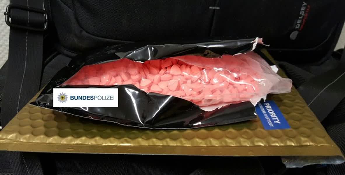 De Nederlander werd op de Duitse A3 vlak na de grensovergang bij Elten van de weg geplukt. In zijn auto werd ruim dertig kilo aan XTC-pillen gevonden, verpakt in meer dan honderd postpakketten. De in totaal 99.500 XTC-pillen waren volgens de Duitse autoriteiten bedoeld voor de Aziatische en Amerikaanse markt. De straatwaarde van zijn postpakketten wordt geschat op 786.000 euro. De 33-jarige Nederland zit voorlopig vast in Duitsland.