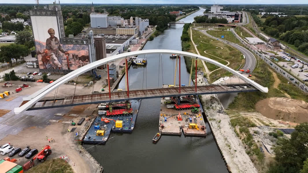 De brug ligt dan nu wel op zijn plek, maar kan nog niet direct gebruik van worden gemaakt. “Er moeten hierna nog meer werkzaamheden gaan gebeuren, namelijk een wegdek en markering op de brug. De komende tijd zijn we er dus nog wel even mee bezig”, laat de woordvoerder weten.