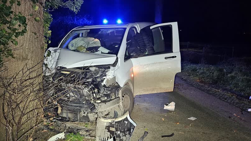 Een pakketbezorger is donderdagavond met een busje op een boom gebotst in het buitengebied bij Heelw...