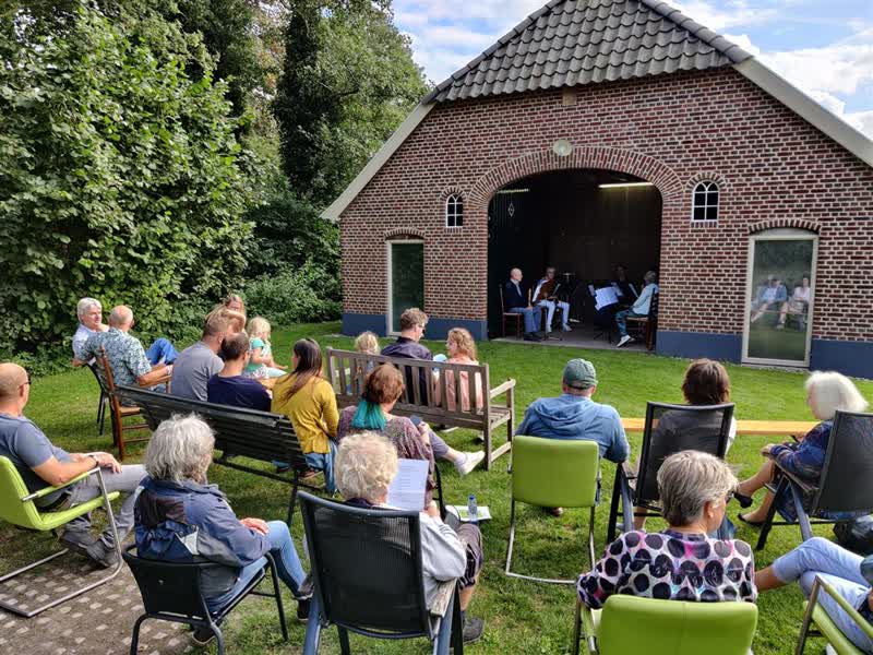“Allemaal een beetje rustig en gemoedelijk aan”, zo omschrijft medeorganisator Bernard Lucassen de sfeer van Oerol, die hij over wilde brengen in de omgeving van Halle-Heide. “Dat moet in de Achterhoek ook kunnen. Ook omdat er met corona heel lang niks te doen was.” Festivalgangers verplaatsten zich zaterdag en zondag tussen de acht locaties, met het Heidehuus als epicentrum. “Je hebt heel weinig uitstoot, maar het is ook knoertgezellig op de fiets”, zegt Lucassen over de keuze voor de verschillende podia. “Je spreekt elkaar nog eens aan.”
