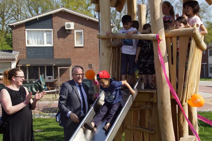 De speeltuin werd zaterdag officieel geopend door Jos Sluiter. "De ruimte lag er dus we hebben gekeken of dit ingepast kon worden", liet de wethouder eerder weten over de totstandkoming. "Het belangrijkste is dat er draagvlak in de buurt is. En dat is gebleken." De speelvoorziening kwam mede tot stand na een succesvolle handtekeningenactie vanuit de buurt.