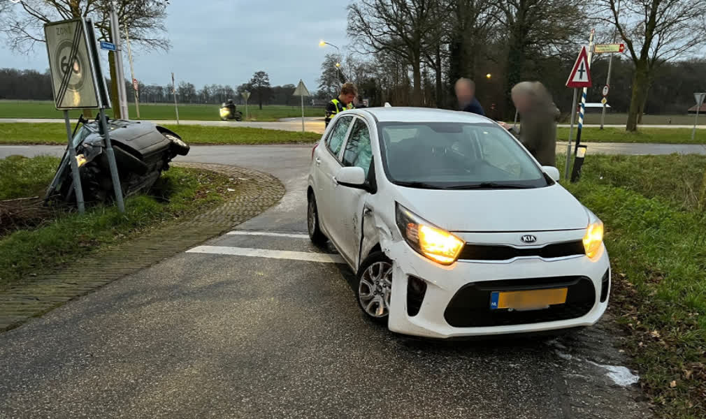 Bij een ongeval met twee voertuigen op de kruising van de Terborgseweg met de Kersendijk en de Rabelingstraat in Westendorp is een auto in de sloot beland. Bij het ongeval raakte niemand gewond.
