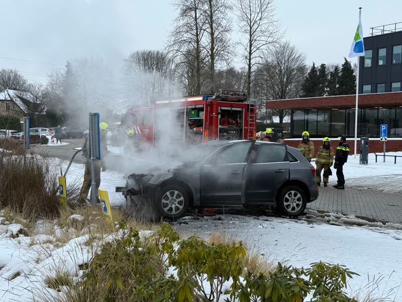 Een auto is donderdagmiddag in brand gevlogen op de parkeerplaats tegenover het gemeentehuis van de gemeente Montferland in Didam. Hoewel de brand snel geblust kon worden, moet het voertuig als verloren worden beschouwd.