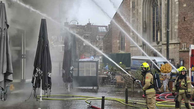 Boven een cafetaria op de Markt in Winterswijk is zaterdagmiddag een zeer heftige brand ontstaan, he...