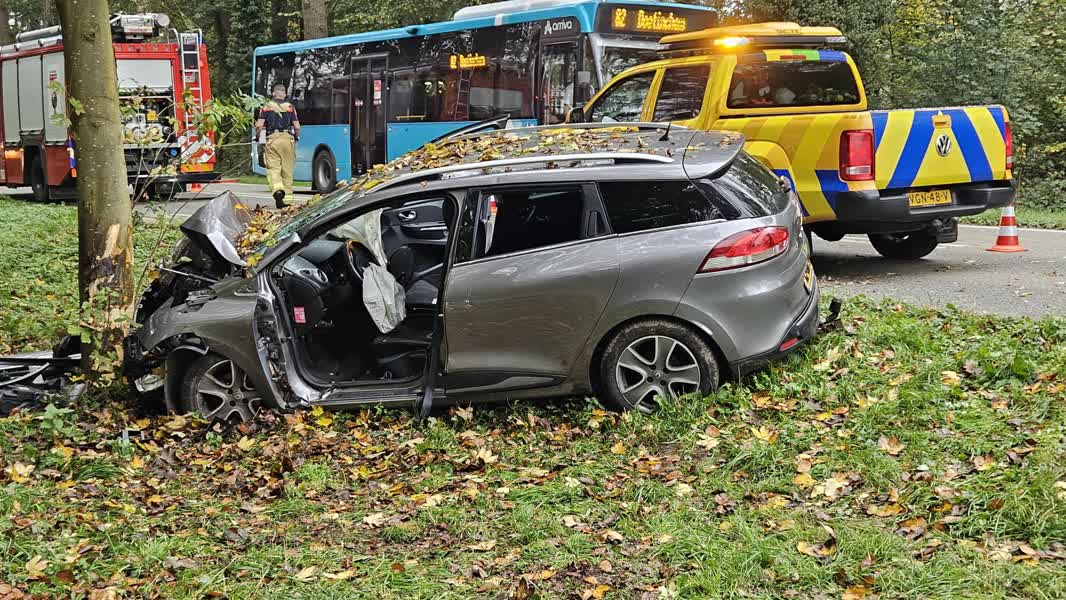 De automobilist is met onbekend letsel naar het ziekenhuis vervoerd. De toedracht van het ongeval wordt nog onderzocht. De weg is afgesloten voor het overige verkeer.