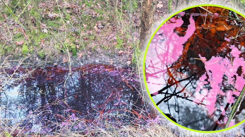 Boswachter Doreen Rugers stond versteld bij het vreemde gezicht van een felroze plas water in een na...