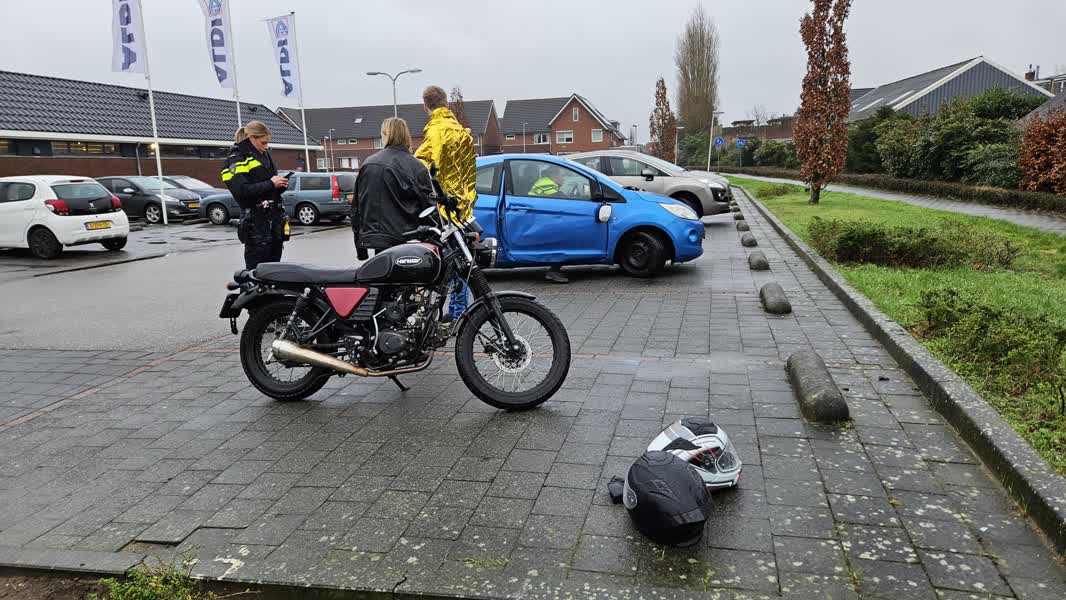 Het ongeval gebeurde rond 14.45 uur op Hoofdstraat. De automobilist en de brommerrijder reden op dezelfde hoogte, toen de bestuurder van de auto rechtsaf sloeg de parkeerplaats van een supermarkt op. De man zag de brommer met daarop twee mensen over het hoofd met een aanrijding tot gevolg. De brommerrijder en zijn passagier kwamen door de botsing ten val. Allebei de voertuigen raakten beschadigd.