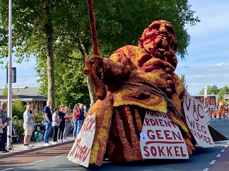 Corsogroepen zagen vooral kansen in de gekoelde bloemen. De kleurverschillen werden bewust ingezet op de wagens. “Met die nuances kun je mooi spelen,” aldus Hogeboom én de juryleden. Voor corsogroep CSW, die met het gevallen standbeeld van Jan Pieterszoon Coen de aandacht trok, waren de gekoelde bloemen een uitkomst. Hun eigen bloemenveld had te weinig bloeiende dahlia’s door een schralere bodem.