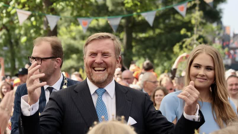 Koning Willem Alexander en de ontvangende burgemeester Mark Boumans spraken er aan het begin en aan ...