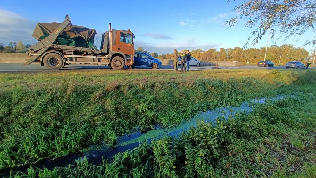 Bij een aanrijding waar drie voertuigen bij betrokken zijn is vrijdagmiddag niemand gewond geraakt. Een van de rijstroken is tijdelijk afgesloten geweest.
