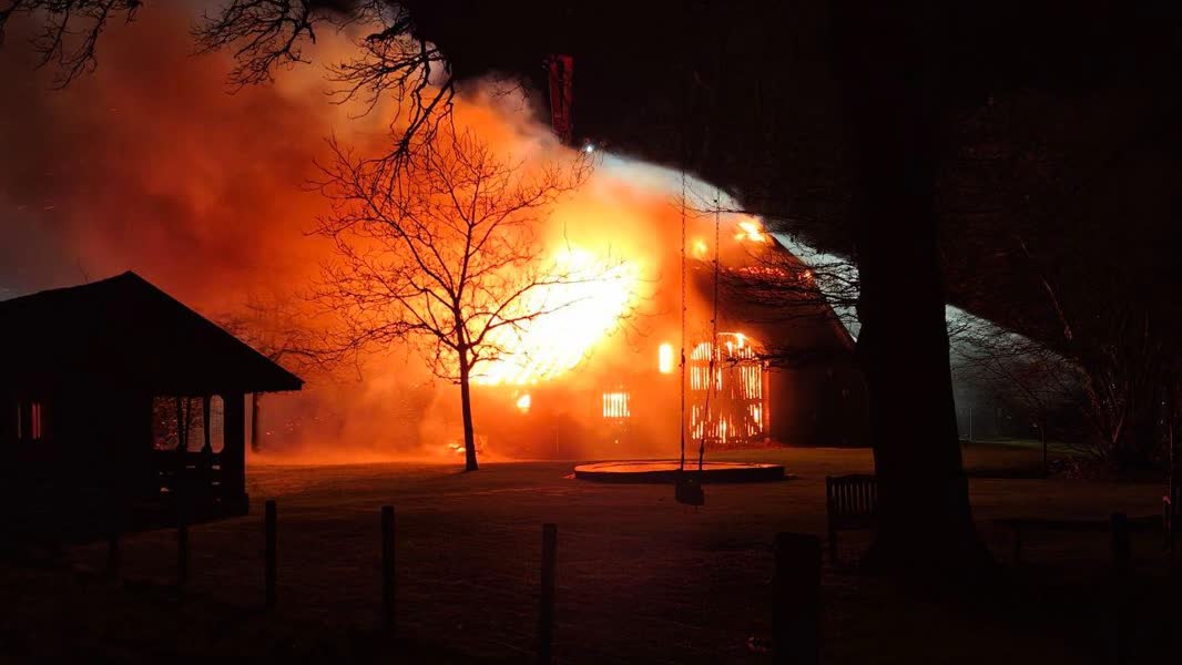 De woonboerderij in Ruurlo is zondagavond volledig in vlammen opgegaan. Toen de hulpdiensten arriveerden, stond het rieten dak al volledig in brand en sloegen de vlammen naar buiten. De brandweer besloot direct op te schalen naar het sein ‘grote brand’.