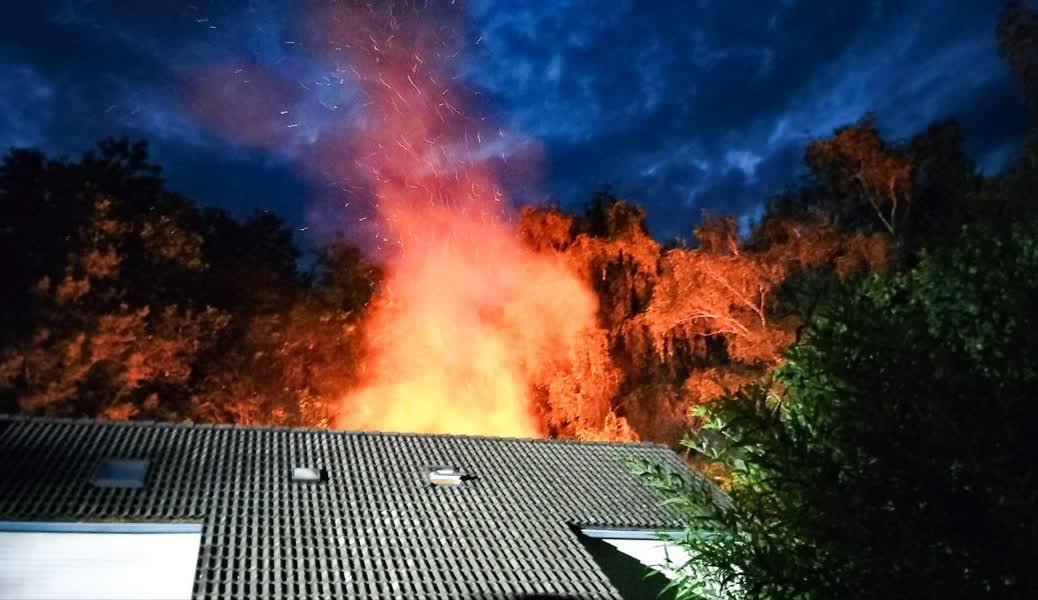 Bewoners van de Schermhorst werden rond 04.45 uur wakker van een harde knal bij een van hun buren in de achtertuin. Toen de wakker geschrokken personen uit hun raam keken zagen ze bij hun buren een schuur volledig in brand staan. De vlammen sloegen hoog boven de woning uit, ook stonden een schutting en bosjes in brand. Toen de brandweer ter plaatse kwam kregen ze het vuur snel onder controle, maar ze konden niet voorkomen dat de schuur verloren ging.