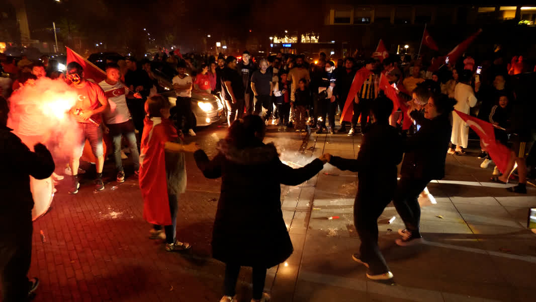Het was voor de Turkse supporters afzien tijdens de spannende wedstrijd, die uiteindelijk met 2-1 werd gewonnen van Oostenrijk. Niet lang na het laatste fluitsignaal verzamelden honderden mensen zich voor het gemeentehuis bij de stad. Met een hoop getoeter, muziek, dans en burn-outs vierden de supporters de winst van Turkije. “Dit is eigenlijk onze traditie”, zegt een van de feestvierende supporters. “Normaal doen we toeteren, maar we moeten ook een beetje aan de wijken om ons heen denken.”