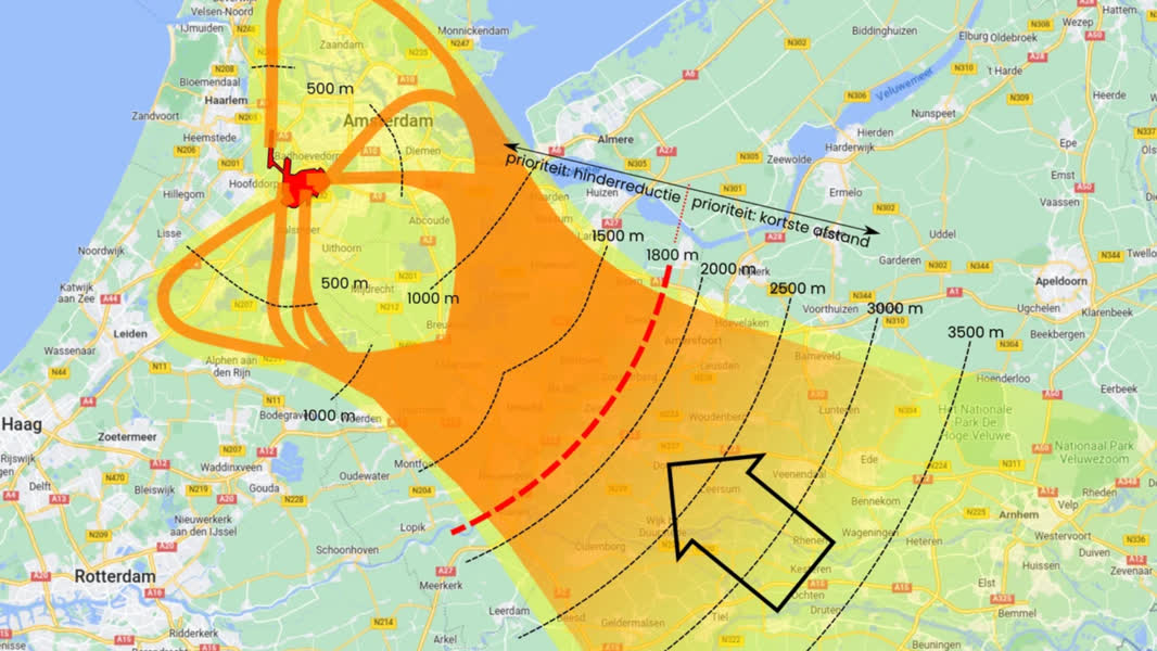 Nu komen vliegtuigen uit het oosten nog relatief hoog over de Achterhoek en maken ze een bocht boven Lelystad om vervolgens de landing in te zetten richting Schiphol. Met een mogelijke vierde aanvliegroute gaat dat in de toekomst veranderen. Deze week onthulde RTL Nieuws dat de luchtverkeersleiding Nederland al in 2021 in het diepste geheim heeft geoefend met een vierde naderingspunt, ZUDOS genoemd. Dit punt ligt ten zuiden van het Utrechtse Doorn. Vliegverkeer uit Duitsland zou via een noordelijke route bij Winterswijk het land binnenkomen en via een zuidelijke route over de Liemers. De routes komen samen net onder Doorn. Vanaf daar kan de landing worden ingezet naar Schiphol.