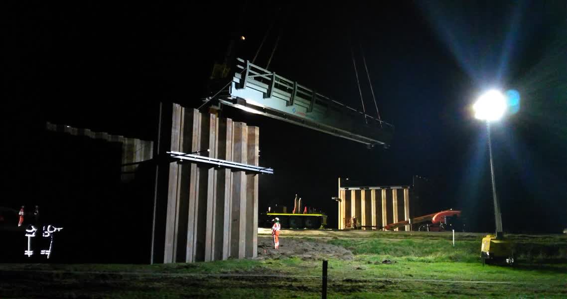 "Het is de eerste constructie die wij gaan bouwen ten behoeve van de nieuwe N18", aldus Thijs Scheres van Rijkswaterstaat. "Dat is eigenlijk naast de kap van de bomen een extra markering dat we echt zijn gestart." Over de brug worden bouwmaterialen van de kant van Groenlo verder het tracé op vervoerd. "Woon-, werkverkeer blijft gelijkvloers. Dat blijft rijden zoals het nu ook rijdt en wij kruisen bovenlangs met ons verkeer", aldus werkvoorbereider Pepijn Mathijssen van Noaber18.