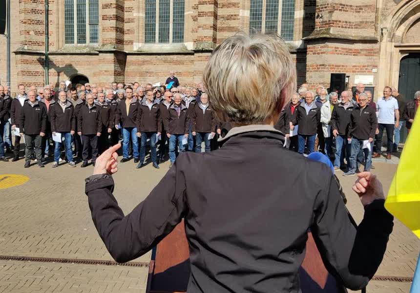 “Een paar honderd man, veel publiek en heel veel emotie”, zo omschrijft Niels Berendsen van het Ettens Mannenkoor de actie in het centrum. De zangers uit Etten doen dit jaar mee met de Passion Achterhoek en daar laten ze ook het volkslied horen. Het koor wilde graag meer doen voor de gevluchte Oekraïners en kwamen ze op dit idee. Dat de actie van het Mannenkoor landelijk is opgepakt vindt Berendsen mooi: “Met name het oosten van Nederland pakte het heel goed op. Er zijn meerdere plekken waarvan we weten dat er gezongen werd. Er is ook in Utrecht gezongen, maar men hoefde zich niet aan te melden dus het kan zijn dat er op nog meer plekken om 12.00 uur gezongen is.”