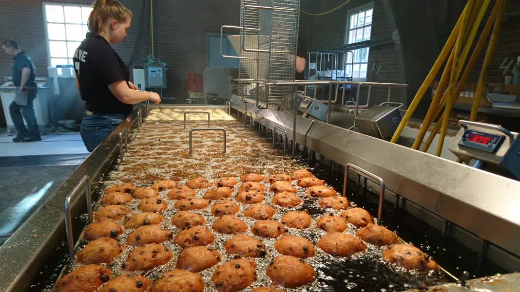 "We hebben het hele oliebollencircus weer opgestart", vertelt de enthousiaste bakker Paul Berntsen. Met tien man sterk wordt er in de markthal van Didam hard gewerkt om genoeg oliebollen en appelbeignets te bakken voor Nieuwjaar. In totaal worden er door vier productielijnen ongeveer zesduizend lekkernijen per uur geproduceerd. "Het draait op volle toeren", vertelt Berntsen. "Dus weer op naar de honderdduizend."