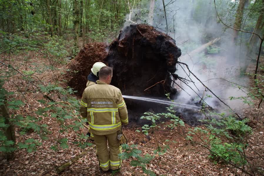 Omgewaaide boom vat vlam bij Lichtenvoorde