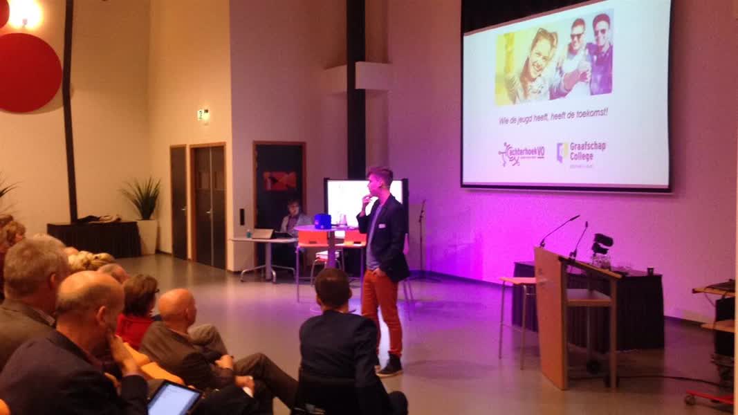 Leden van alle Achterhoekse jongerenorganisaties zijn naar Winterswijk gekomen om te luisteren en te spreken over onderwijs in de regio. Zo gaf Suzanne Ruesink, voorzitter van Gelders Agrarisch Jongeren Kontact, een lezing over onderwijs en passie. “Een krimpgebied hoeft geen nadeel te zijn voor onderwijs”, stelt Ruesink. “Ze zeggen dat de vergrijzing toeslaat en er zijn veel ouderen. De kennis zit bij die ouderen dus misschien moet je een koppeling maken tussen oud en jong.” Want jongeren zijn volgens haar heel belangrijk binnen het bedrijfsleven. “Betrek de jongeren”, is haar boodschap. “We willen inderdaad de jongeren er wel bij betrekken want dat vinden we leuk, maar als het echt op beslissingen aankomt, dan doen we het nog zelf. Want de jeugd, misschien weten die toch niet waar ze het over hebben”, besluit Ruesink.