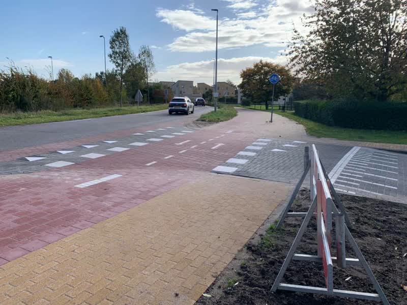 Naast het aanbrengen van de haaientanden is ook een gootje op het fietspad weggehaald. “Daar kwamen mensen en kinderen met hun fietsband in terecht”, schetst Weenk, die nu tevreden is over de verkeerssituatie.