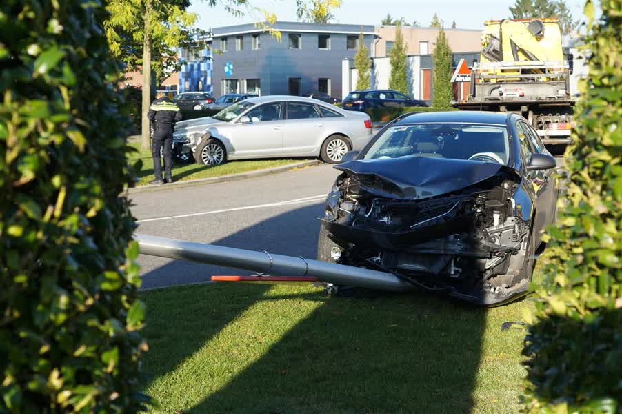 Het ongeluk gebeurde rond 09.45 uur. De auto’s raakte elkaar frontaal op de kruising met de Industrieweg. Geen van de bestuurders raakte gewond. De voertuigen zijn ernstig beschadigd en moesten beide worden afgesleept.