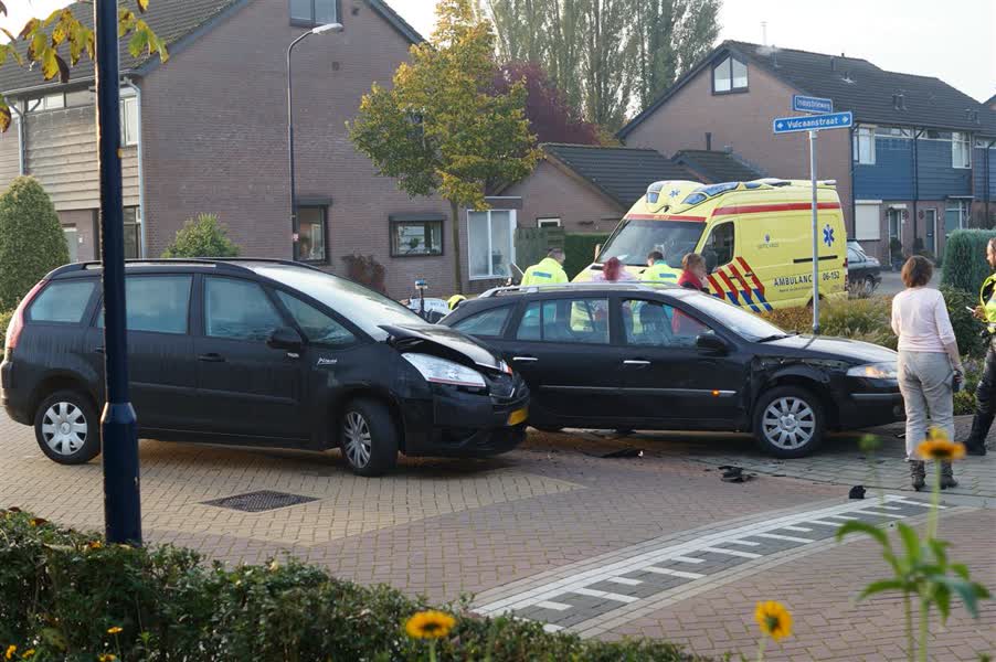 Het ongeluk gebeurde omstreeks 08.00 uur. Een automobiliste wilde vanuit de Industrieweg de Vulcaanstraat oversteken maar zag een auto die van rechts kwam over het hoofd. Geen van hen kon een aanrijding nog voorkomen.