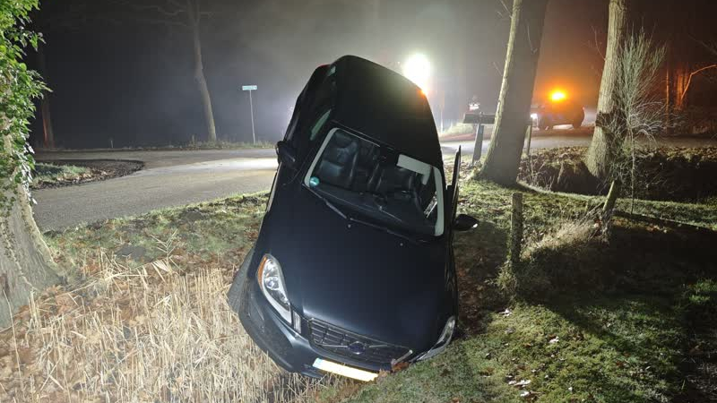 Geluk bij een ongeluk in Haarlo; auto komt bijna schadeloos uit de sloot