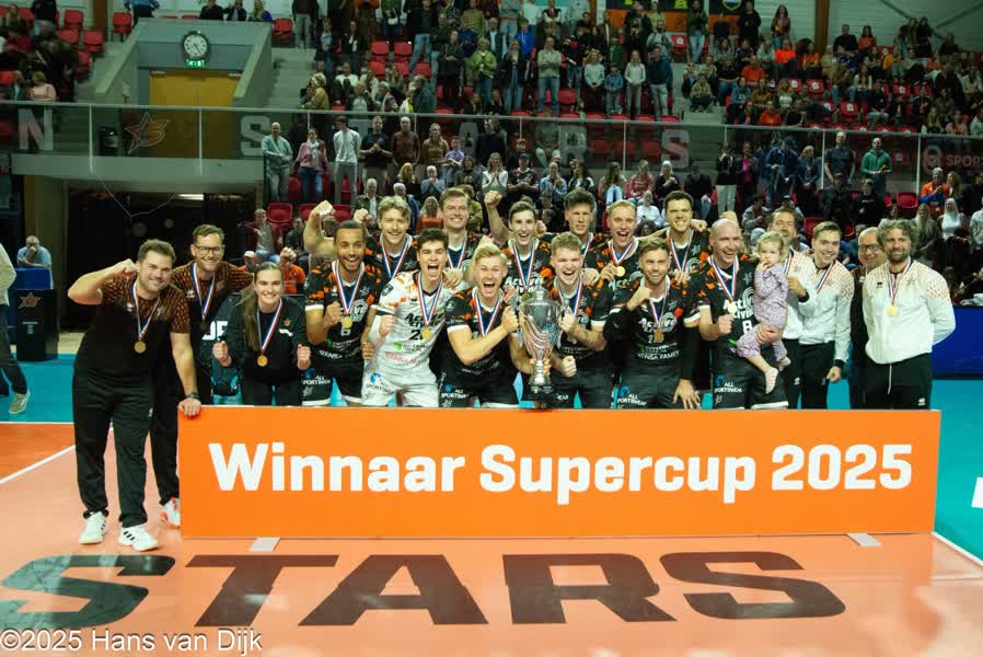 Orion Stars heeft zondag de eerste prijs van het seizoen in de wacht gesleept. De ploeg van coach Dirk Sparidans versloeg in eigen huis Draisma Dynamo overtuigend met 3-0 en veroverde zo de Supercup.