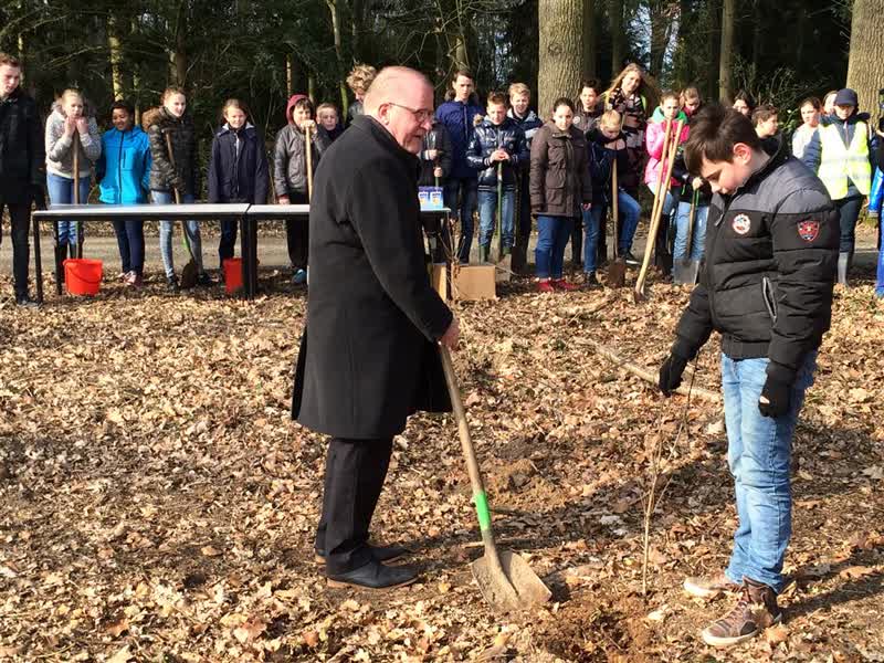 "Het is heel belangrijk, want we hebben er heel veel", aldus wethouder Sluiter over het belang van bomen in de gemeente. "Die willen we op een goede manieren onderhouden en daar hoort nieuwe planten bij. Ik denk dat het gewoon goed is om scholieren te betrekken bij deze ontwikkelingen." De gemeente is begonnen met het kappen van 900 bomen en heeft er reeds 204 gekapt. Vandaar dat het planten van nieuwe bomen in het verkeerde keelgat schiet bij actiegroep Kappen Nou, die veel heeft gedemonstreerd tegen het kap-besluit van de gemeente.