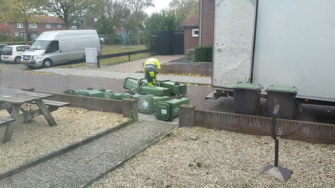 Het nieuwe afvalbeleid van de gemeente gaat per 1 januari 2017 in, wat betekent dat Oude IJsselstreek nog twee maanden heeft om de afvalcontainers te leveren. In de Karel Doormanstraat worden vrijdag de oude groencontainers afgebroken en vervangen door nieuwe containers. De wieltjes worden eraf gehaald en vervolgens wordt de bak in de auto geladen om afgevoerd te worden naar een ander land. Daar kunnen de containers worden hergebruikt.