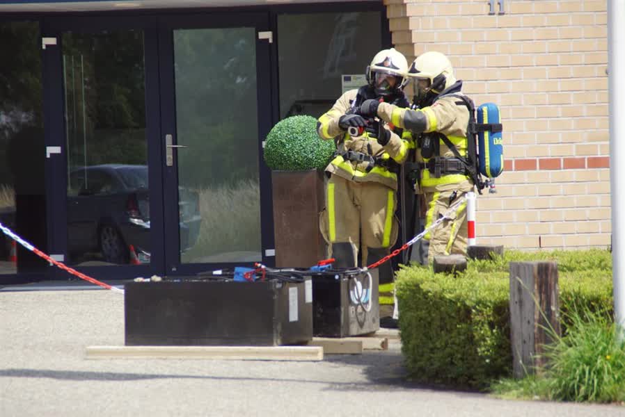 De brandweer ontving rond 13.00 uur melding van de situatie bij het bedrijf aan de Markenweg. Een container met twee accupakketten dat bij het bedrijf was afgeleverd zorgde voor een stinkende lucht. De accu’s begonnen te roken en zijn daarna naar buiten verplaatst. De brandweer heeft het accupakket daar gecontroleerd laten uitroken.