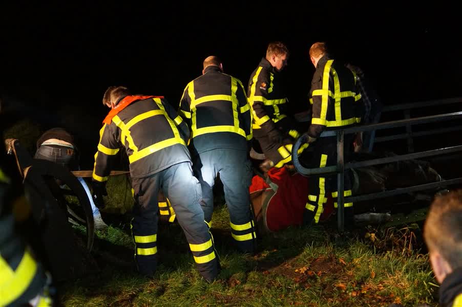 De brandweer trof op een bruggetje nabij de Riethuisweg in Vorden een paard aan dat in een spagaat op de brug lag. Een dierenarts heeft het paard verdoofd en behandeld. Vervolgens is het met een tractor van de brug getrokken, zodat het elders weer bij kon komen.