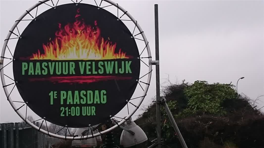 “Dit is het 33e jaar dat wij het organiseren. Het is eigenlijk begonnen met een kratje bier en een beetje vuur stoken, maar het is uitgegroeid tot een traditie in Velswijk. Er is altijd een leuke opkomst”, vertelt Pierre Staring, organisator van stichting paasvuur Velswijk. “Samen met elkaar een paasvuur opzetten en voor de bezoekers een leuk feestje maken, dat maakt het zo leuk.”